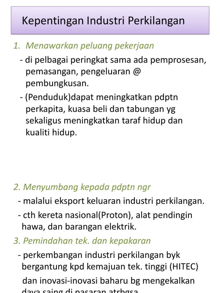 Memajukan sektor perindustrian di Malaysia setelah berlakunya perubahan struktur ekonomi. 3Jenis-jenis industri perkilangan di Malaysia. Kesimpulannya sektor perindustrian mampu membawa pelbagai impak positif kepada rakyat negara ini.
